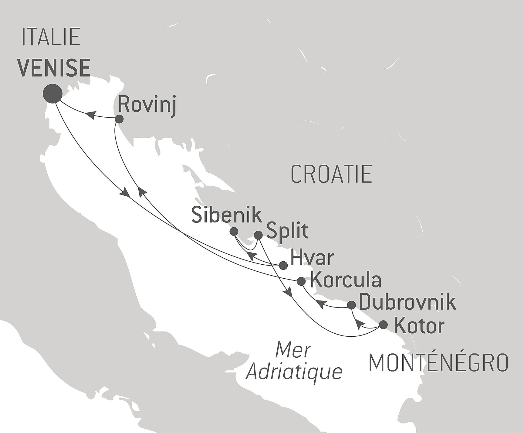 Après une halte à Sibenik, porte dentrée vers les emblématiques chutes de Krka, Split vous ouvrira ses portes pour une découverte de son centre historique, classé au patrimoine mondial de lUnesco, avec les joyaux que sont le palais de Dioclétien ou encore la cathédrale Saint-Domnius.