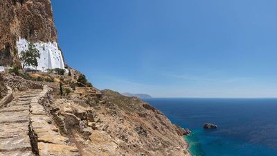 L’après-midi,Spaceexcursionoptionnelle AUTHENTIQUE / EXPERIENCE : Amorgos(2), l’île du « Grand Bleu ». Vous visiterez le monastère de la Panagia Hozoviotisa d’où vous profiterez d’une vue panoramique sur la mer Egée. Construit au Xe siècle afin de protéger une icône religieuse de la Vierge Marie du IXe siècle, il n’est visible que depuis la mer, telle une tache blanche lumineuse s’accrochant à la falaise à300 mètres au-dessus du niveau de la mer. Après avoir gravi les 269 marches menant au monastère, les moines vous offriront quelques loukoums accompagnés d’un verre de raki ou d’eau. Puis profiterez de temps libre à Chora, capitale de l’île, et explorez ce village pittoresque.