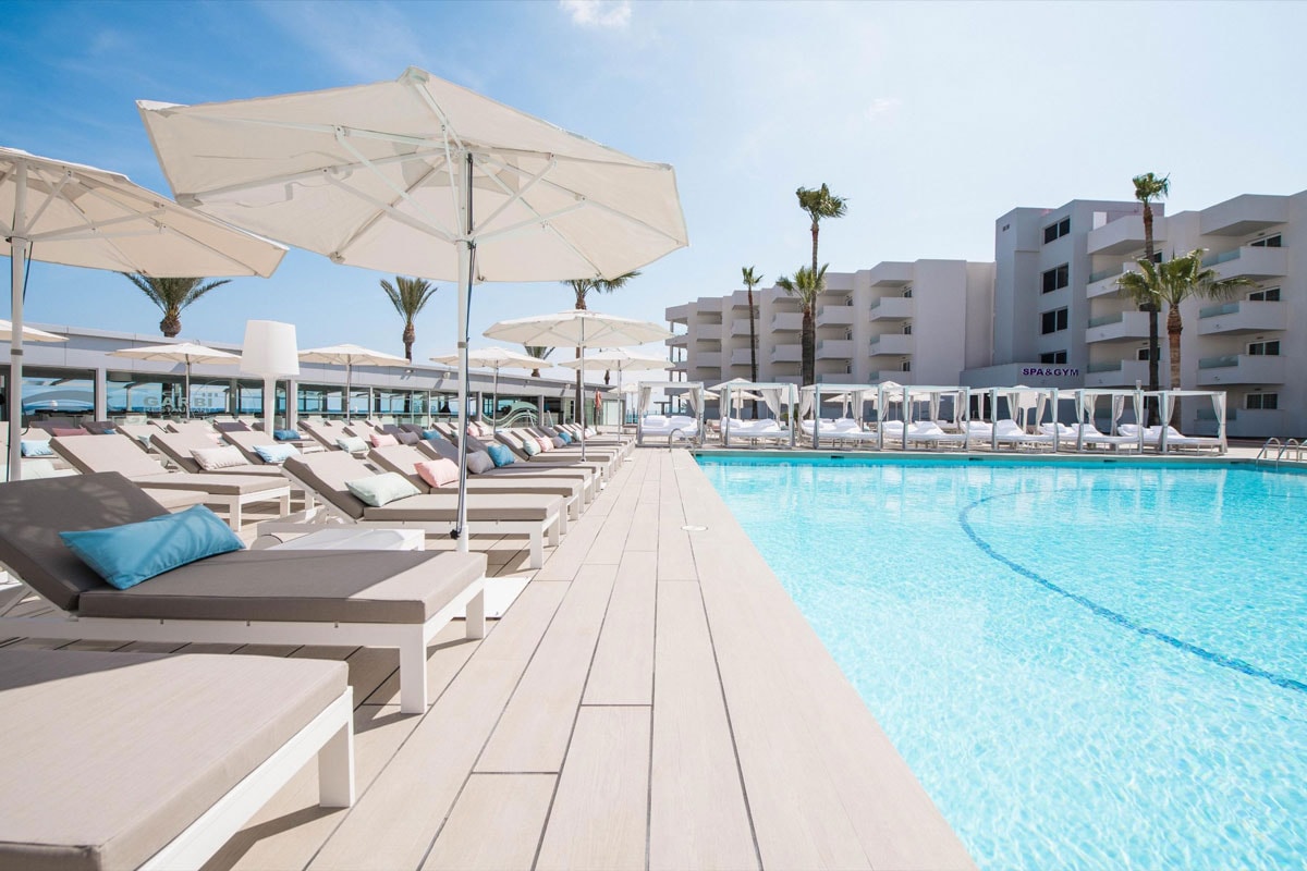 emplacement privilégié directement sur la plage de sable fin de Playa d'en Bossa. L'hôtel propose un cadre idéal pour profiter des plaisirs balnéaires tout en étant proche des animations d'Ibiza.